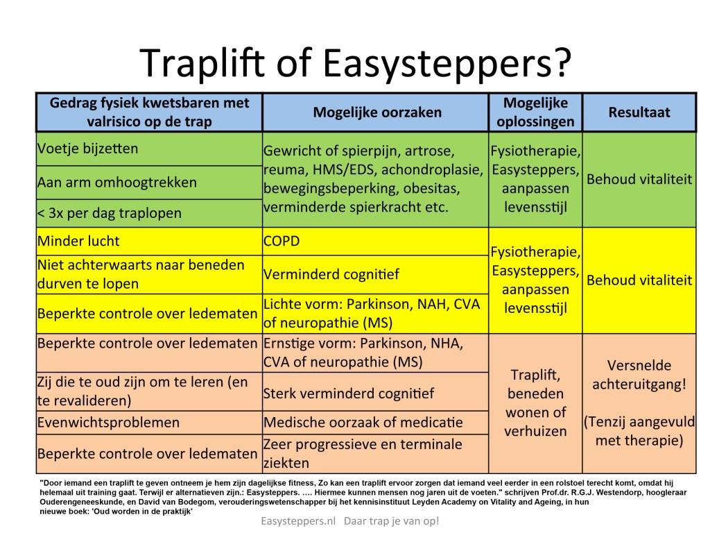 Kijk in de onderstaande tabel keuze traplift of Easysteppers het beste bij u past!